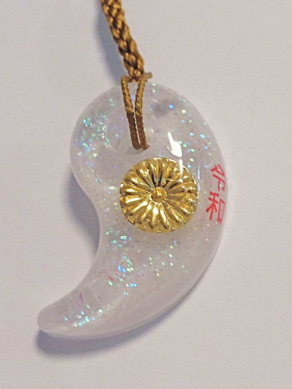 菊の御紋入りの陰陽統合オルゴナイト勾玉です。